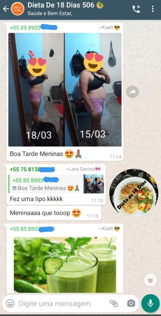 Você irá participar do Grupo Vip no Facebook, a onde você receberá dicas de saúde e receitas Low-Carb. E também parcipará do Grupo Vip no Whatsapp por 18 dias.