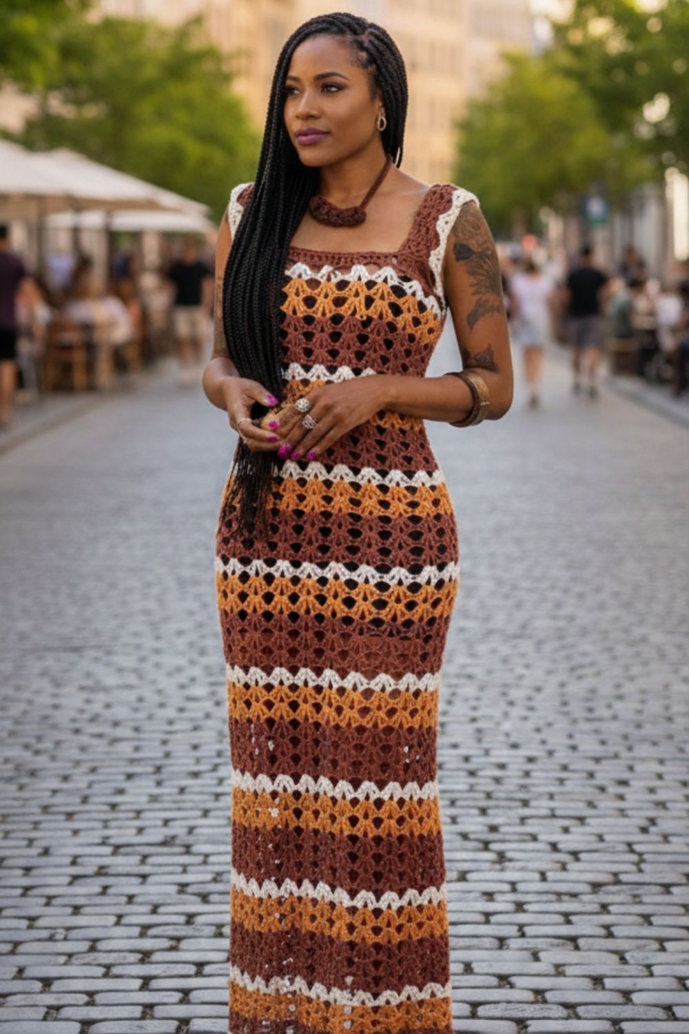 Seja para uma festa casual ou um evento mais sofisticado, os vestidos de crochê podem ser a estrela do look.