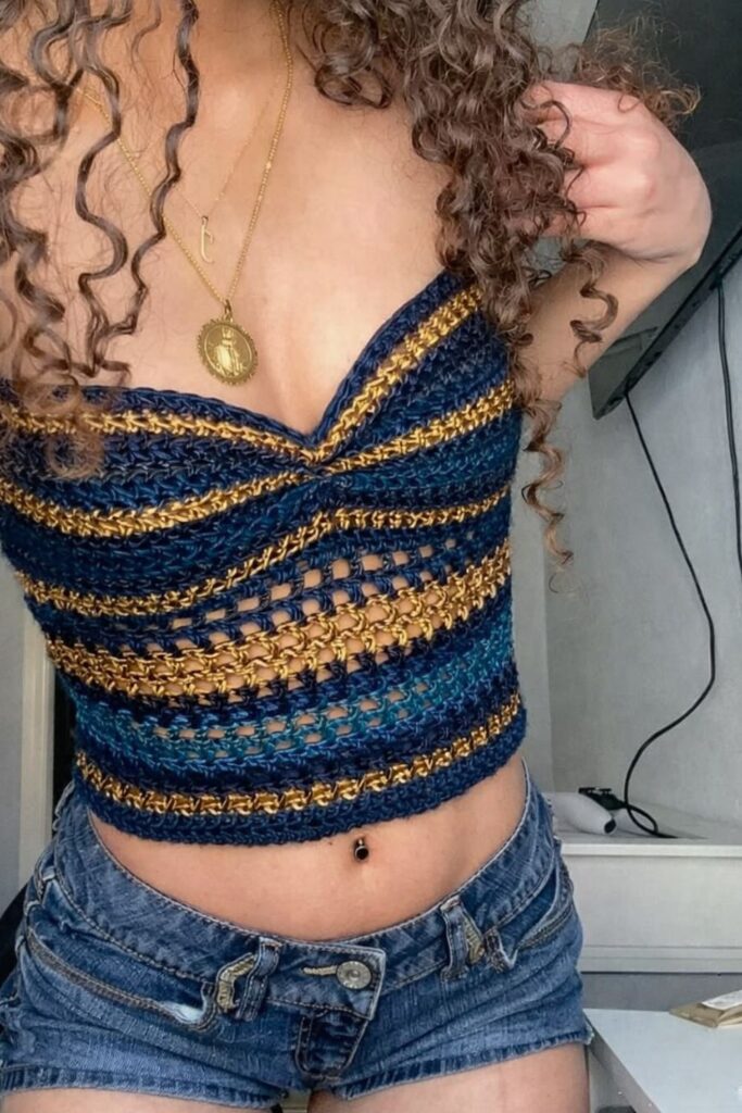 Neste artigo, separei 10 modelos lindos de crop tops de crochê com links de tutoriais gratuitos para você aprender, testar novas técnicas e se inspirar no seu próximo projeto. Se você quer criar peças incríveis para usar no verão, vender ou simplesmente aumentar sua coleção de crochê, este post vai te ajudar bastante.