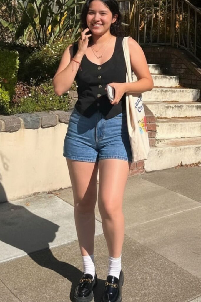 Para um look casual, combine seus shorts femininos com uma camiseta básica e tênis. Adicione acessórios simples, como uma bolsa transversal e óculos de sol, para completar o visual.