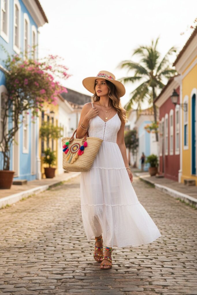 Já para quem busca elegância com conforto, o vestido midi branco é uma escolha certeira. Ele alonga a silhueta e funciona tanto para compromissos casuais quanto mais arrumadinhos. Um conteúdo incrível para se inspirar é: