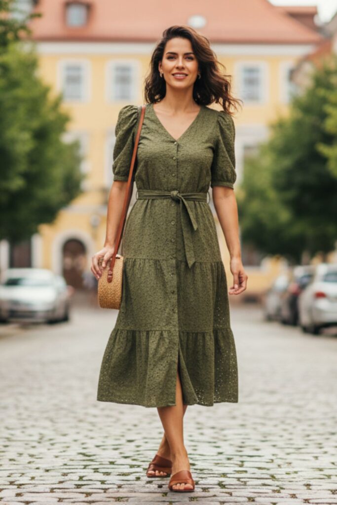 - Trabalho informal: escolha modelos midi, com mangas e cores neutras.