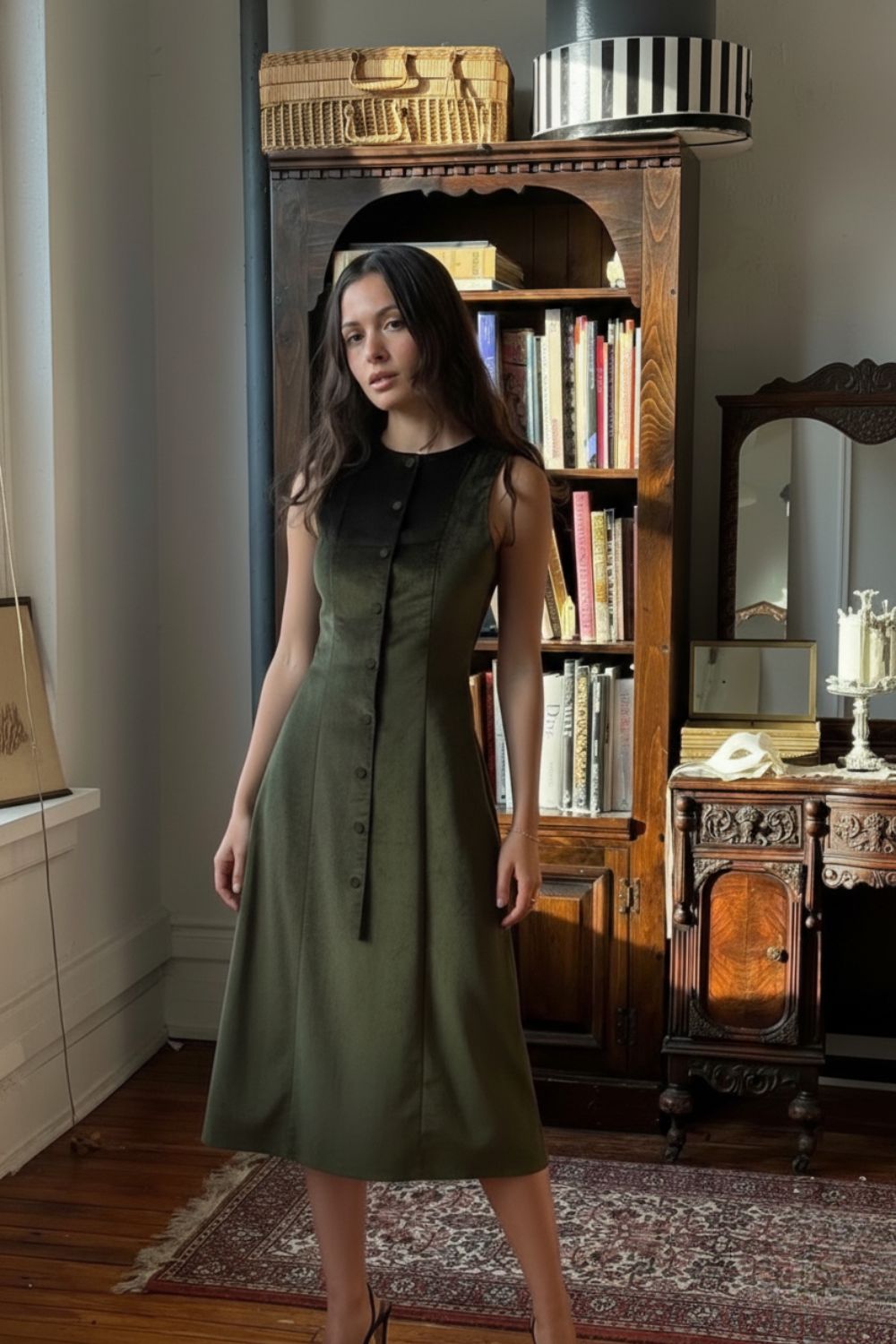 No ambiente profissional, o vestido midi básico se destaca pela elegância e praticidade. Prefira cores neutras como preto, bege, cinza ou azul-marinho.