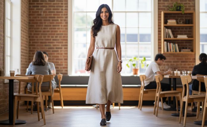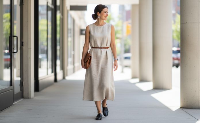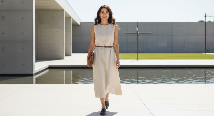 O vestido midi básico favorece diferentes tipos de corpo. Modelos retos oferecem conforto, enquanto versões com cintura marcada ajudam a criar proporção.