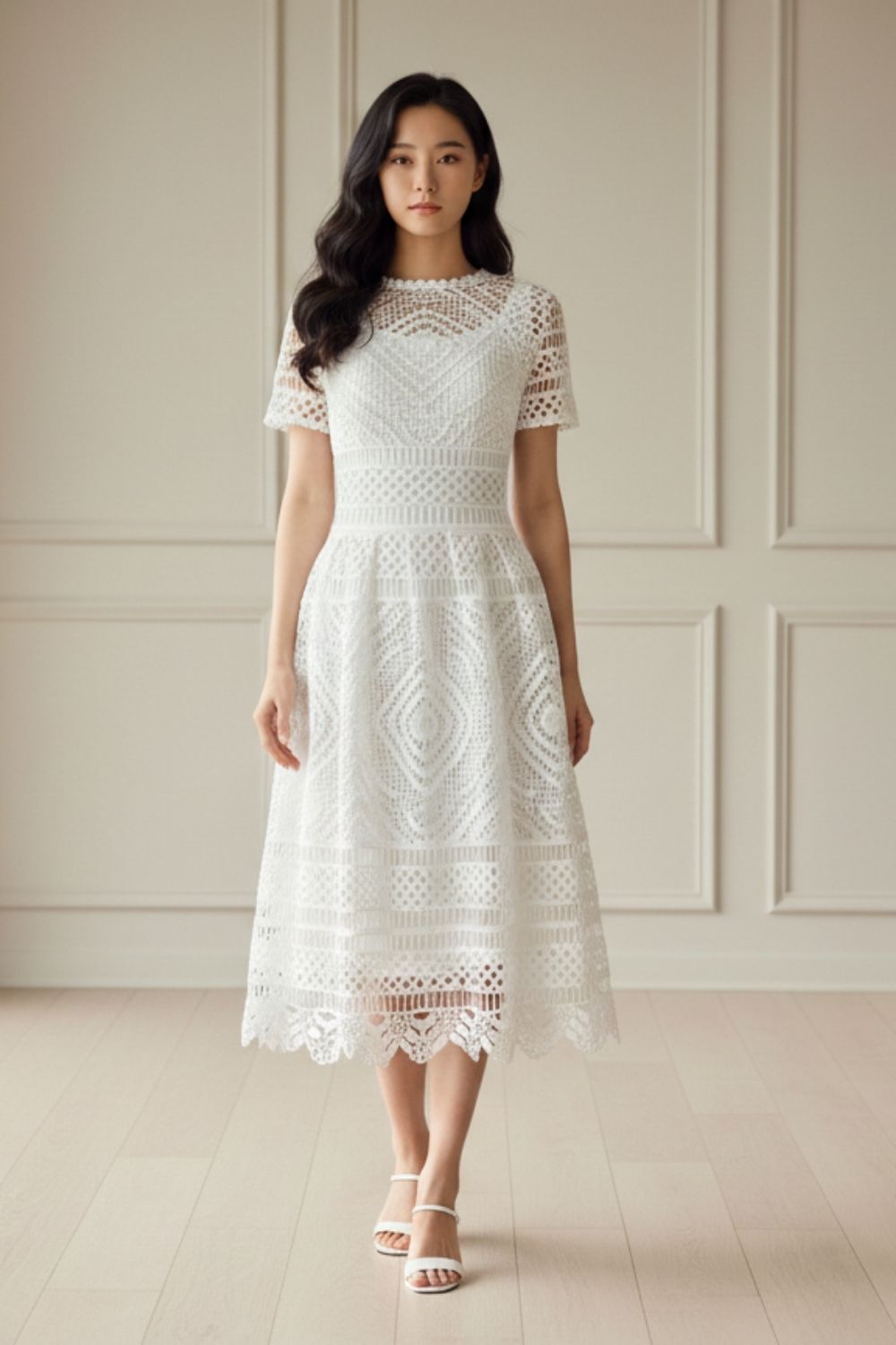 O comprimento do vestido pode variar conforme o estilo da noiva e o tipo de cerimônia. Vestidos curtos ou midi são ideais para casamentos civis informais ou realizados durante o dia. Vestidos longos, por sua vez, adicionam um toque de formalidade e elegância, sendo perfeitos para cerimônias à noite.