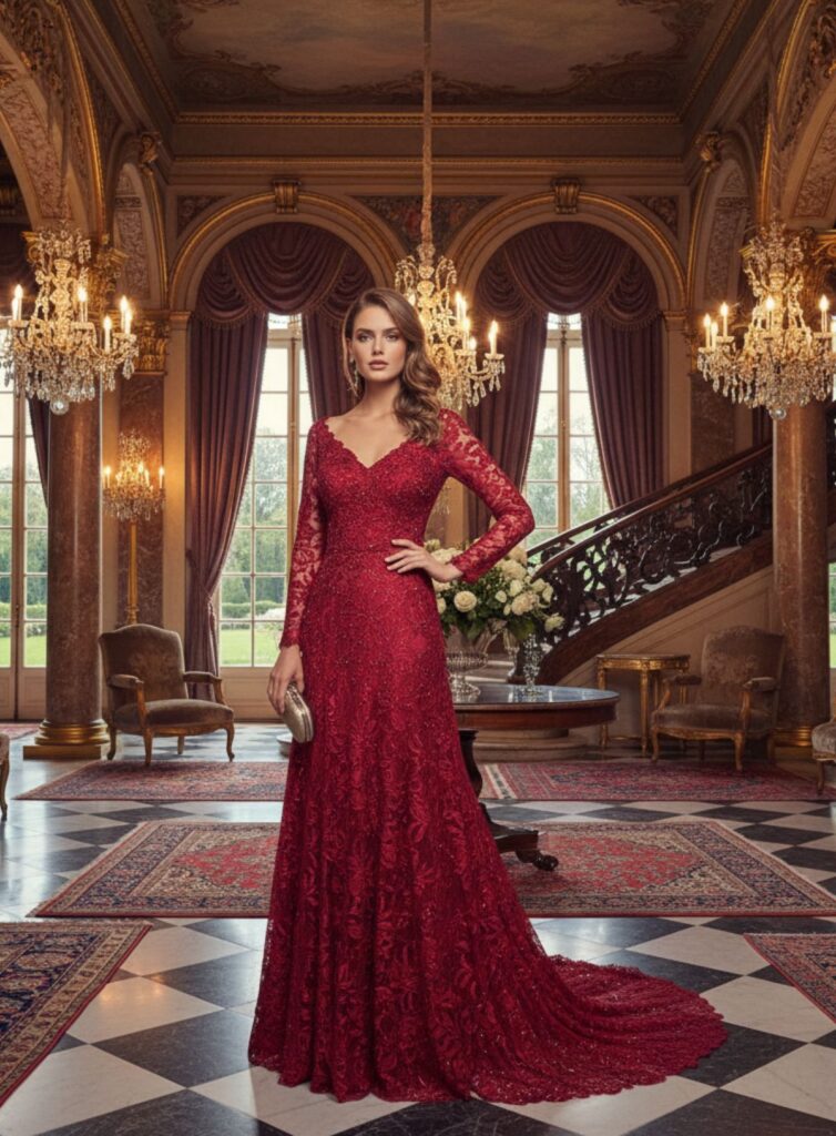 Detalhes como mangas bufantes, babados e transparências sutis transformam o vestido em uma peça statement. Para combinar, você pode se inspirar em editoriais internacionais, como os da Vogue ou Elle, que mostram como a renda é atemporal e sempre elegante.