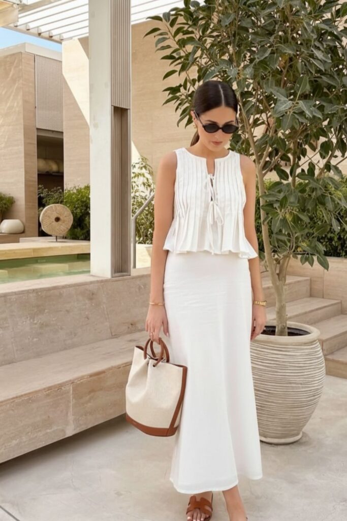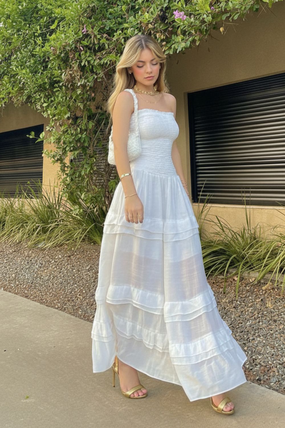 Como combinar acessórios com um vestido branco longo?