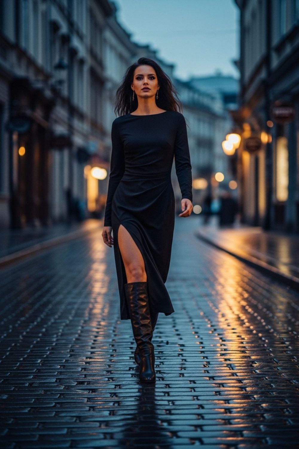 2. Elegância com botas de cano alto