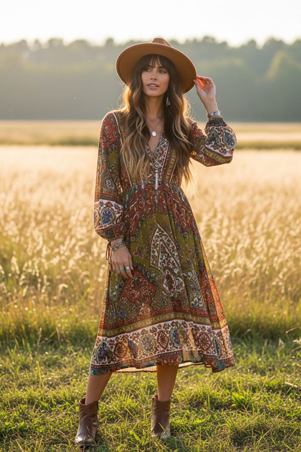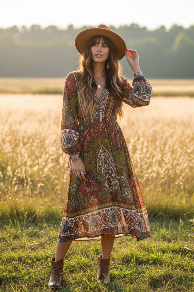 4. Estilo boho com botas de cano curto
