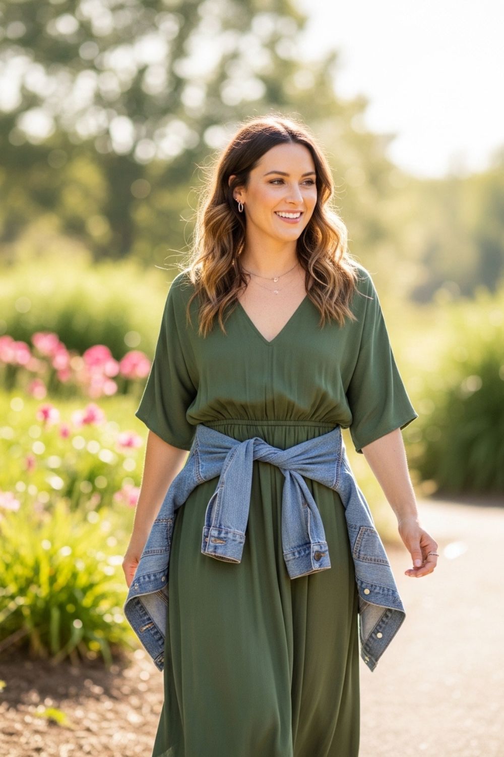 Jaqueta amarrada na cintura: truque simples para definir a silhueta e criar estilo.